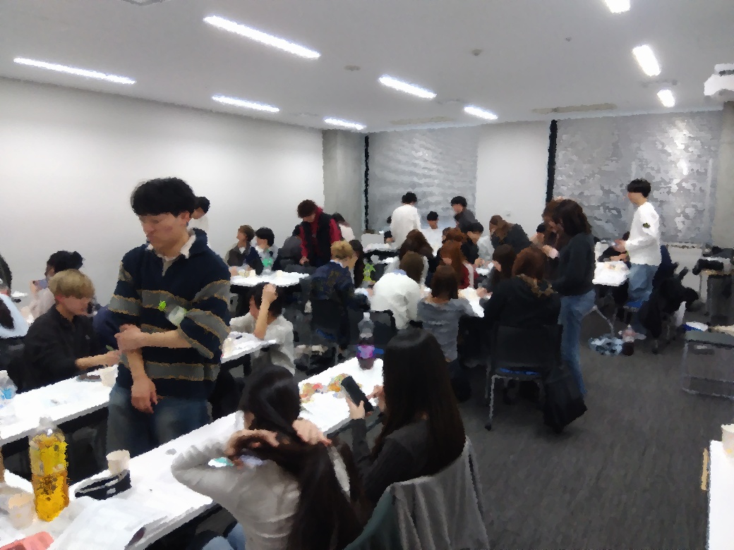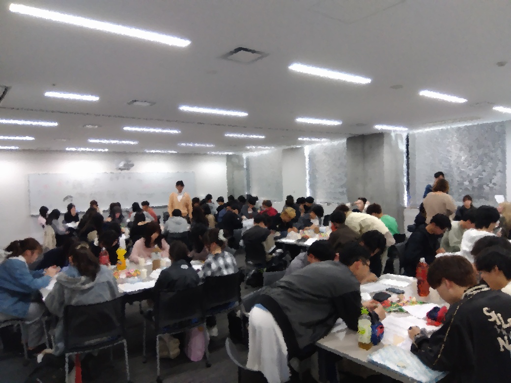 この会は,新入生が在学生に履修や部活・サークルなど大学生活について相談したり,新入生どうしで仲を深めたりできる場です.今年度はパーティションを取り払って大きくした教室も使っていたためか,「いっぱい!」という感じが強かったです.活気があり,私も新入生に質問で呼び止められることが多かったです.「このコースに行きたいのですが,共通教養科目では今のうちに何を取っておくといいですか?」という質問があったり,「宇宙って何かワクワクしない?するって!俺これ取ろう!」という声が聞こえたり,嬉しい状況でした.